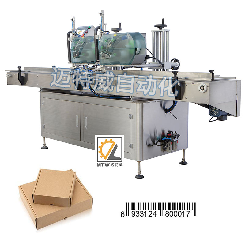 該設備用于瓶子、盒子、成型包、包裝箱等上平面的打印和貼標,可貼一張或兩張標。可在空白標或預留標上在線即時打印生產日期批號、序列號、條形碼、二維碼、品名、專銷區等預設內容并完成同步貼標。