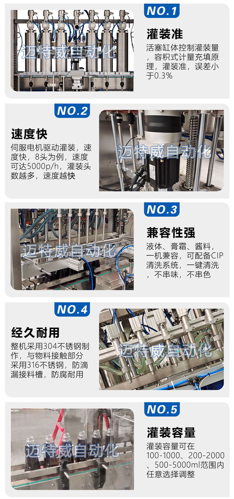 ● 高精度伺服活塞定量灌裝,定量準確,性能可靠;