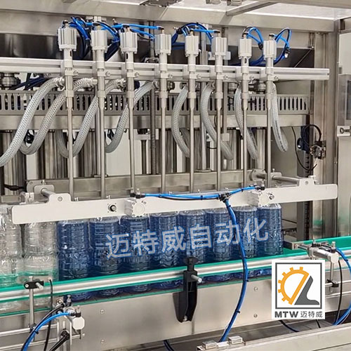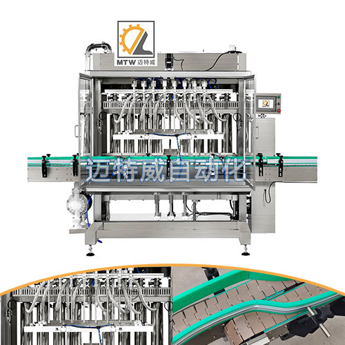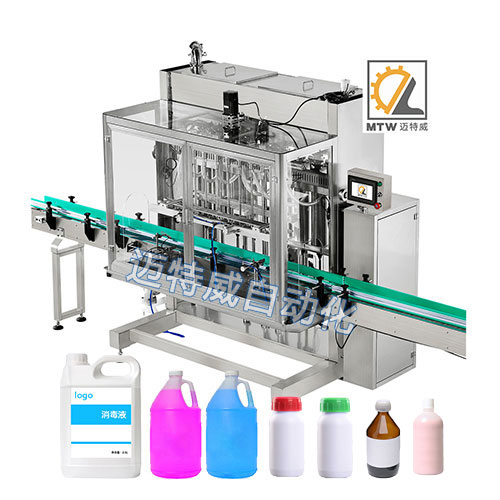 全自動液體灌裝機采用伺服活塞灌裝機灌裝,活塞缸體控制灌裝量,灌裝量可在100-1000、200-2000、500-5000ml范圍內任意選擇調整,適用于各種水劑液體、粘稠液體灌裝,灌裝不同物料,兼容性強。
