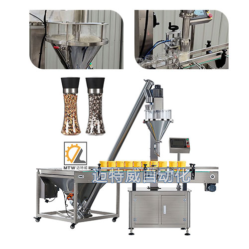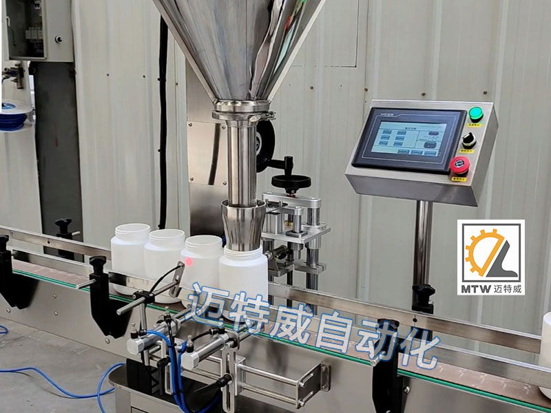 粉劑粉末(顆粒)定量灌裝機(jī)適用于粉末及小顆粒自動(dòng)在線灌裝,能完成瓶子自動(dòng)定位、充填及計(jì)量等工作,由一臺(tái)螺桿計(jì)量機(jī)、一臺(tái)鏈板輸送帶及一個(gè)氣動(dòng)定位裝置組成,可與理瓶機(jī)、旋蓋機(jī)、貼標(biāo)機(jī)等組成整套灌裝流水線。