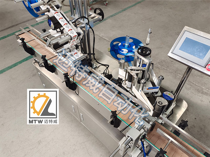 SL-DR全自動圓瓶上平面+側面貼標機為特制機器,共有兩個貼標頭:一個貼標頭在頂部,另一個貼標頭在側面,它可以給瓶子、罐子貼上2張標簽,一張貼在頂部,另一張貼在側面。可實現頂標和側標的定位貼標。