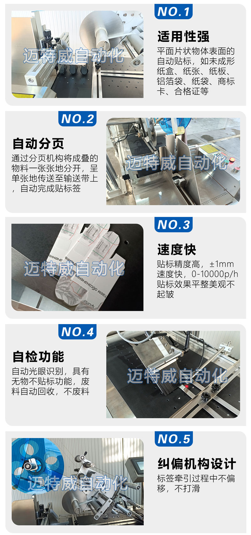 分頁貼標機主要適用于未成形紙盒、紙張、紙板、鋁箔袋、紙袋、商標卡、合格證等平面片狀物體表面的自動貼標。可加分頁機單機使用,亦可與其它機器組成聯動生產線。還可以根據生產需求在本機上配備打碼機、噴碼機,實現貼標和打碼同步完成。