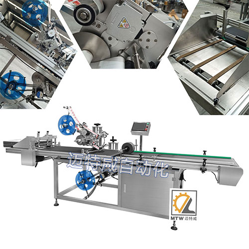 SL-F分頁貼標機用于平面片狀物體表面的自動貼標,上下貼兩張標。