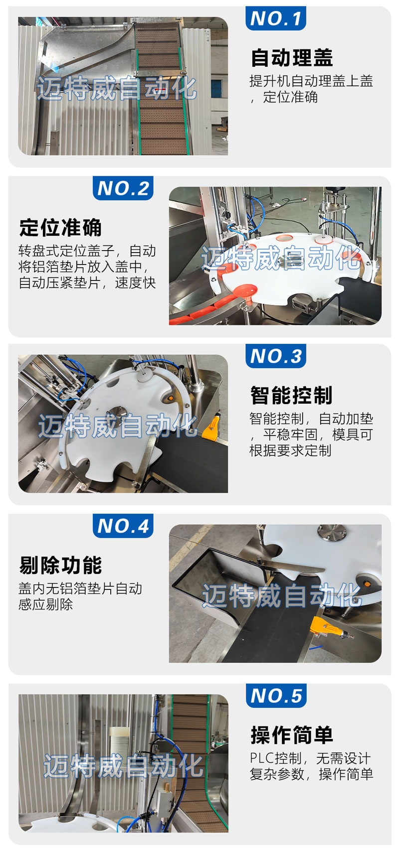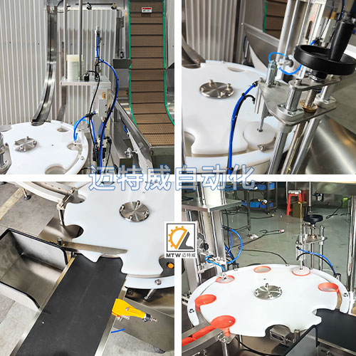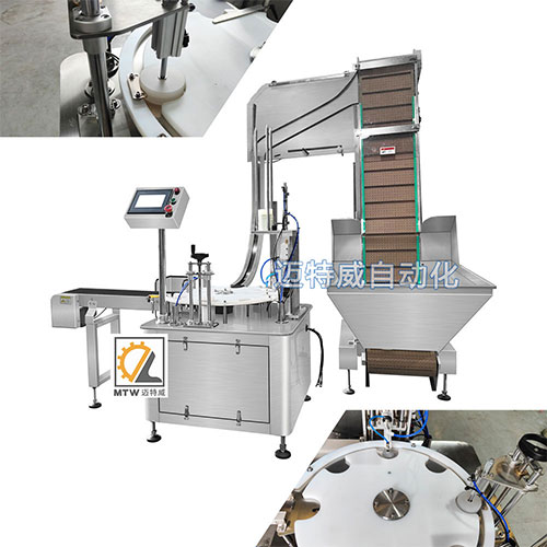 ● 轉(zhuǎn)盤(pán)式定位蓋子,自動(dòng)將鋁箔墊片放入蓋中,自動(dòng)壓緊墊片,速度快;