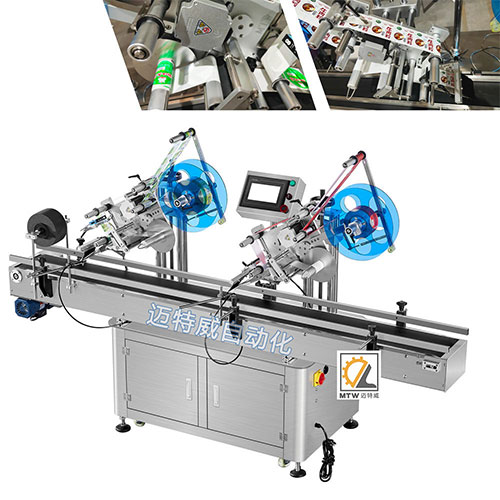 這是一款特殊的平面貼標機,我們日常中用到的平面貼標機,標簽使用完成后,需要重新穿標,再次啟動,我們設計研發的這臺平面貼標機,采用雙標頭不停機切換標簽,一個標簽斷標后,另一個繼續自動貼標,貼標不停機,雙標頭不停機換標,輪流貼標,自測補標,提高生產效率。