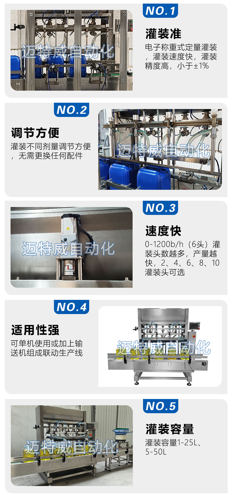 ● 稱重式灌裝機(jī)采用電子稱重式定量灌裝,灌裝速度快,灌裝精度高;