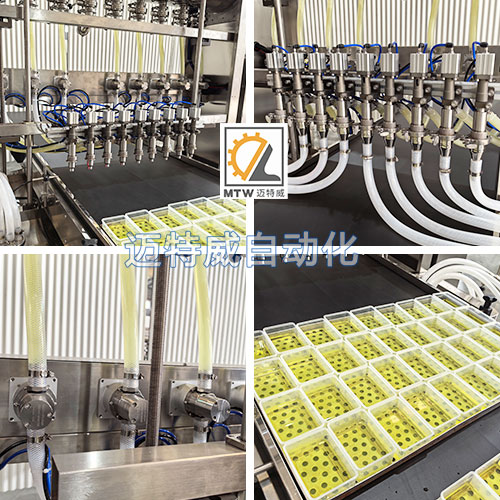 應(yīng)用于盒裝雞蛋液灌裝設(shè)計,灌裝頭可根據(jù)客戶需求靈活調(diào)整。