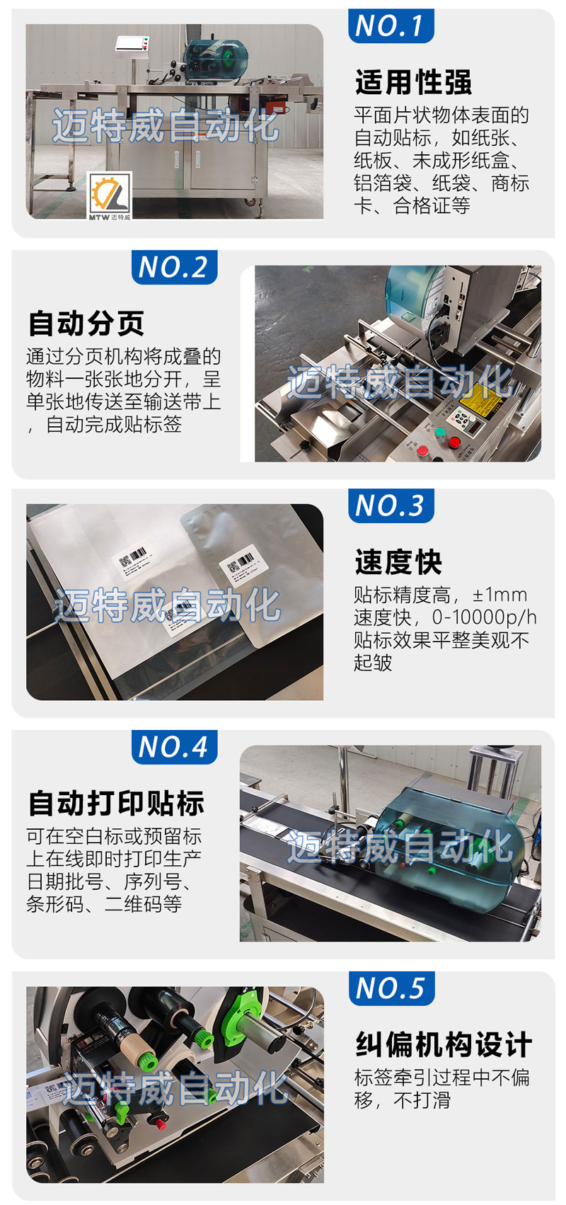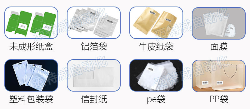 該設(shè)備適用于適用于紙張、鋁箔袋、紙袋、商標卡、合格證等平面片狀物體表面的自動打印和貼標。可在空白標或預(yù)留標上在線打印生產(chǎn)日期批號、序列號、條形碼、二維碼、品名、專銷區(qū)等預(yù)設(shè)內(nèi)容并完成同步貼標。