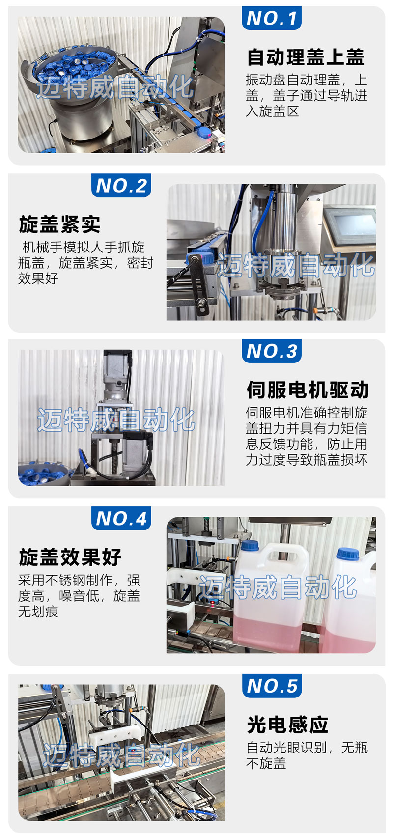 單頭伺服旋蓋機采用不銹鋼制作,強度高,噪音低,旋蓋無劃痕;