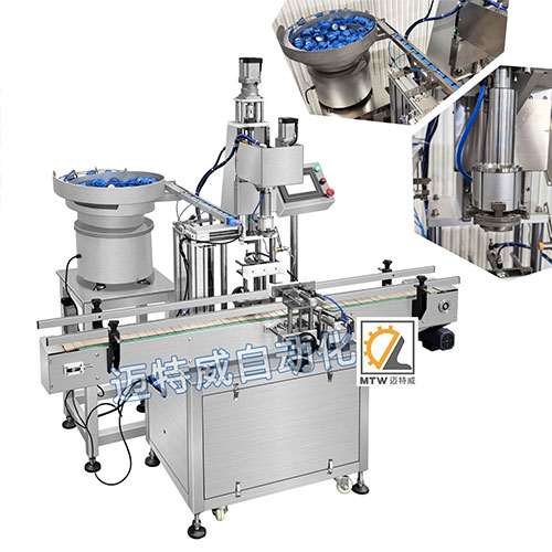 單頭伺服旋蓋機主要適用于各種塑料瓶和玻璃瓶的塑料或金屬螺紋蓋、防盜蓋旋蓋。