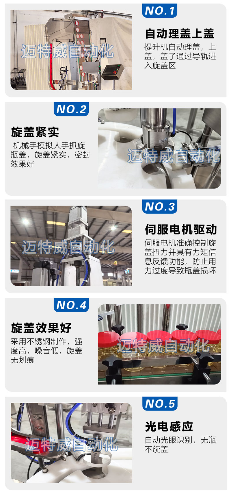 單頭伺服旋蓋機采用不銹鋼制作,強度高,噪音低,旋蓋無劃痕;