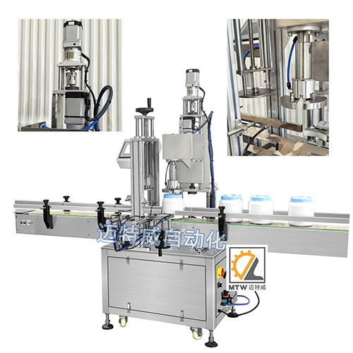 單頭伺服旋蓋機主要適用于各種塑料瓶和玻璃瓶的塑料或金屬螺紋蓋、防盜蓋旋蓋。