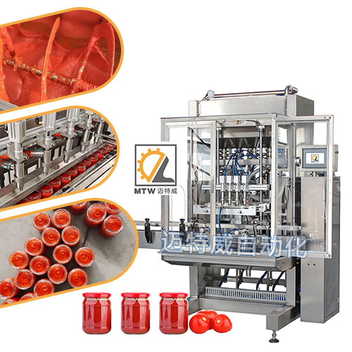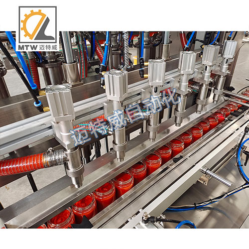 醬料灌裝機采用伺服活塞灌裝機灌裝,活塞缸體控制灌裝量,灌裝準,誤差小,灌裝量可在100-1000、200-2000、500-5000ml范圍內任意選擇調整,適用于不同瓶型的醬料在線自動灌裝。