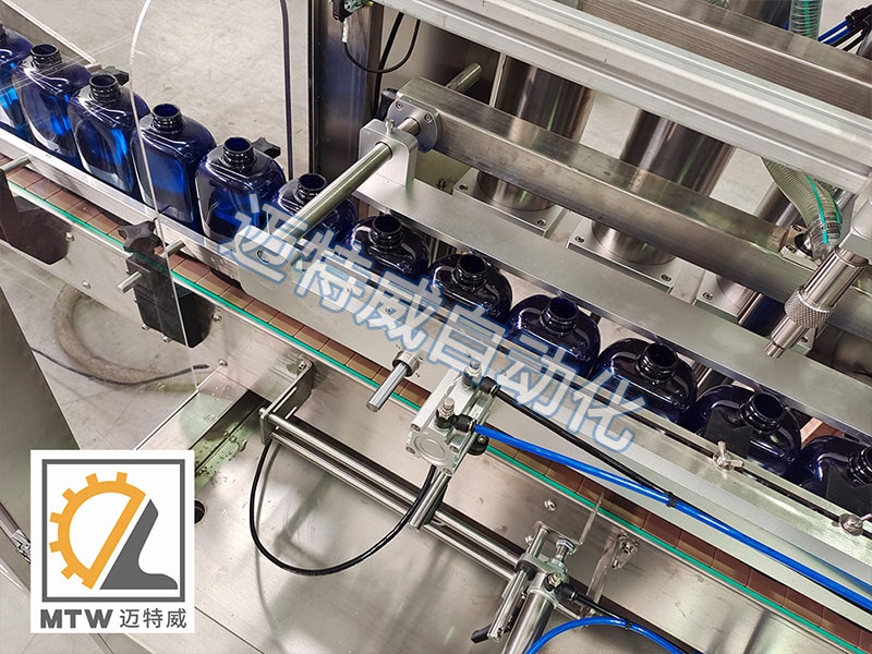 洗衣液/洗潔精灌裝機采用伺服活塞灌裝機灌裝,活塞缸體控制灌裝量,灌裝準,灌裝量可在100-1000、200-2000、500-5000ml范圍內任意選擇調整,適用于不同瓶型的日化用品在線自動灌裝,水乳膏一機兼容。
