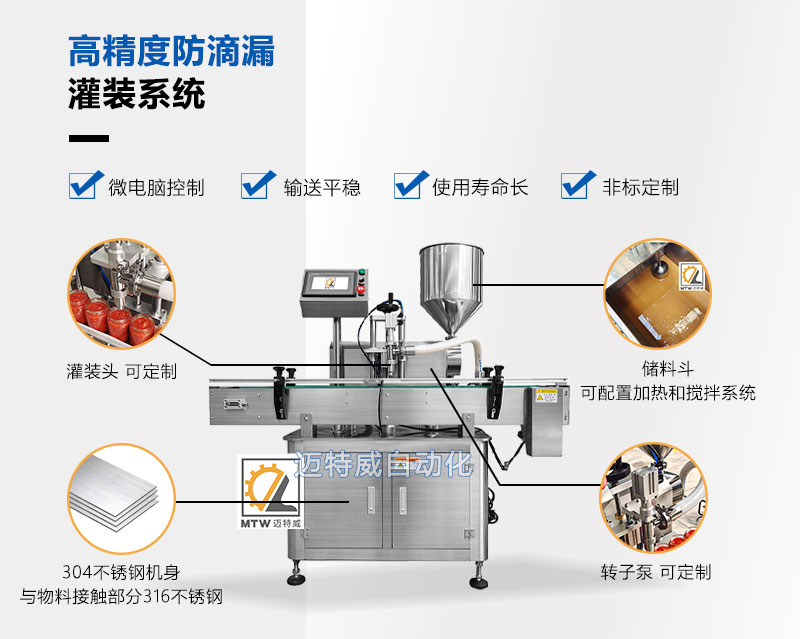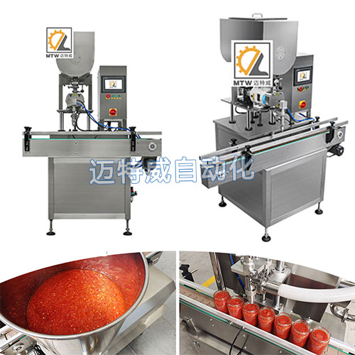 轉子泵灌裝機灌裝物料范圍廣,適用于顆粒粘稠醬料、膏體、液體和粘性物料灌裝。