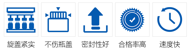● 該機采用直線式進瓶,提高旋蓋速度,適用瓶子誤差的最大化;