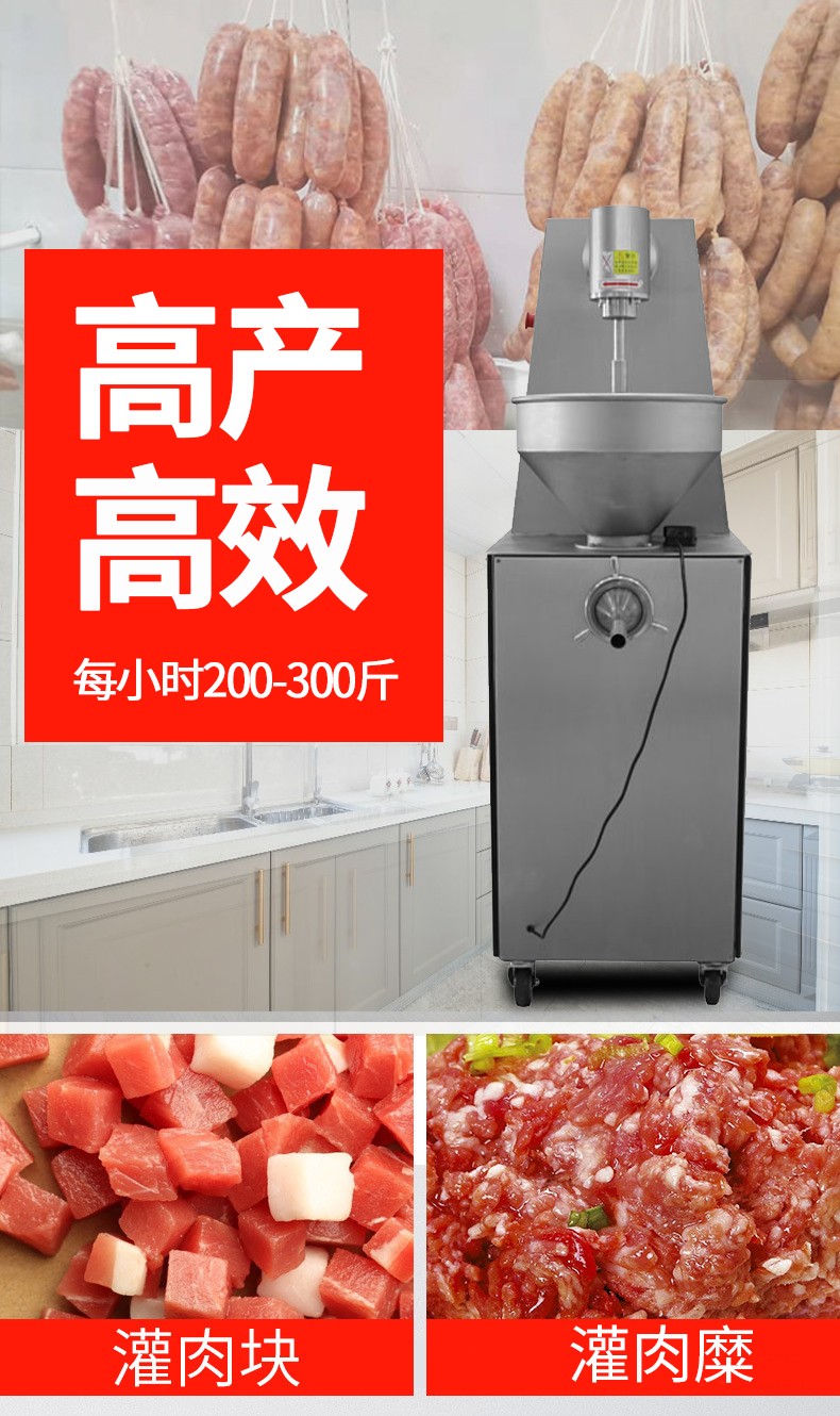 全自動商用灌腸機——XZ-320灌腸機,專門針對灌四川香腸的肉片,肉片不攪碎。